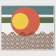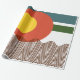 This wrapping paper has a mid-century modern design of horizontal wavy lines with two circles and two horizontal broad stripes. Want different colours? Message me.