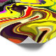 This abstract artwork features a dynamic swirl of vibrant colours, including yellow, green, red, purple, and black. The design showcases fluid, wavy patterns that intertwine seamlessly, evoking a sense of energy and motion. The interplay of contrasting hues creates a striking visual impact, resembling the flow of liquids or natural phenomena like lava streams. This piece embodies the essence of abstract art, blending boldness and creativity into a harmonious composition.