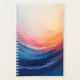 A vibrant and dynamic abstract piece featuring sweeping, brushstroked waves of color. Deep blues and indigos create a sense of depth and coolness at the bottom, merging into a central swirl of vivid pinks, fiery oranges, and reds. The composition is highly kinetic, suggesting the powerful motion of a wave, a cosmic nebula, or pure elemental energy, with a bright, warm light source illuminating the upper center. The textures are rich, suggesting a thick application of paint.