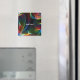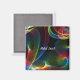 Abstract swirls, multicolored on black background, refrigerator magnet template. Ready to customise with your own text.