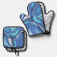 Abstract Symphony in Blue 2 Oven Mitt & Pot Holder Set