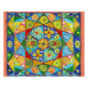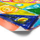 Vibrant geometric patterns fill the image, featuring circles, triangles, and swirls in a kaleidoscope of colours including blue, green, yellow, and red. The intricate design creates a sense of symmetry and balance.