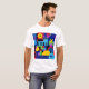 Bright colours and bold shapes evoke familiar motifs—see street signs, railroad ties, and the letters U-T-A scattered throughout this fun abstract design.