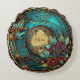 Abstract Teal and pink stained glass Mother's Day Round Cushion