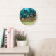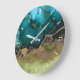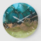 Abstract Teal Black Green Gold Without Numbers Large Clock