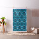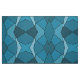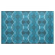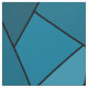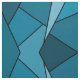 Stylish geometric fabric features abstract polygon shapes in various shades of teal outlined in black.