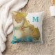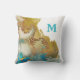 Abstract Teal Gold Agate Watercolor Monogram Cushion