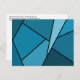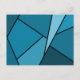 Inspired by stained glass, this stylish geometric design contains polygons in various shades of teal outlined in black. A pale blue-green triangle slashes in from the upper right with an array of progressively darker teal quadrangles and other shapes spiralling around it from light to dark. Two dark greenish-blue shapes ground the left side of the original design.