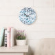 Abstract Terrazzo Mosaic Navy & Light Blue Pattern Large Clock