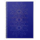 Three abstract sun rays or spiral flowers overlap against a purple blue background. Choose from sketchbook, bullet journal, checklist, graph paper, recipe book, or lines in various widths and colours.  Also choose a spine colour to further customise your notebook look.