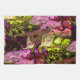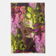 Abstract tie dye marble pattern in pink and chartreuse green kitchen towel.