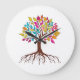 Abstract tree with roots and colourful leaves. Isolated on white background. Flat style.