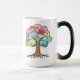 Abstract tree with roots and colourful leaves. Isolated on white background. Flat style.