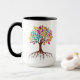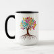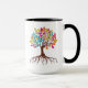 Abstract tree with roots and colourful leaves. Isolated on white background. Flat style.