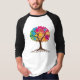 Abstract tree with roots and colourful leaves. Isolated on white background. Flat style.