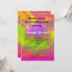 An interesting abstract composition. Geometric triangles and rectangles in colours from a cool sixties colour scheme. Lime green, hot pink, royal purple, tangerine orange, and more. These shapes are tumbling around in every direction giving a sensation of motion and movement. A fun and psychedelic piece. Personalise with your birthday party details.
