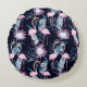 Abstract tropical pattern with flamingo, protea, l round cushion