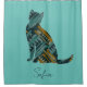 Abstract Turquoise and Gold Cat Shower Curtain