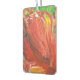 Rich reds dominate the surface, balanced by warm earth tones and flashes of green, creating depth and visual tension.