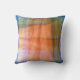 The original abstract design on this 16” Throw Pillow was made from an original photograph by ZoeSPEAK. It suggests a view, through a window, of a landscape. The border is in shades of blue, and the interior is in shades of orange and green with pale yellow and pink highlights. There are linear bands with holes punched in them crisscrossing the design.