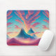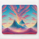 Astonishing Abstract Volcanic Sunrise design, depicting a volcano dramatically erupting into a sunrise, with a mix of pastels and deep vibrant colours of pink, blue, orange, purple and red.