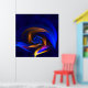 Vibrant colours abstract shape poster, created as a fractal that looks like a twisted energetic vortex or swirl. It also may remind of an abstract fantasy flower with a spectacular corolla or it may inspire a cosmic rotation or unknown galaxy. The colours combination is based on shades that are not very commonly paired such as electric intense blue, orange, yellow and a smooth touch of purple.