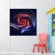 Poster designed with original abstract shape composition, fractal design that looks like a twisted energetic vortex or swirl. The image also may remind of an abstract fantasy flower with a spectacular corolla or it may inspire a cosmic rotation or unknown galaxy. The colours combination is based on shades of blue and red, colours that usually give a lovely match.