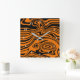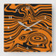 Abstract Warped Black Orange Waves Wall Clock
