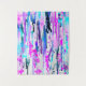 An abstract design of freeform watercolor drips and splashes in a blue, turquoise and pink colour palette.
