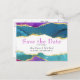 Abstract Watercolor Ink Fuchsia Pink Teal Gold wedding Save the Date postcard with a pink font highlight.