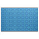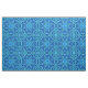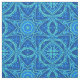 Fabric in a geometric, watercolor effect mandala pattern in shades of light to dark denim blue