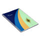 Editable calligraphy, abstract waves in blue, golden and light green with a peacock feather Notebook.