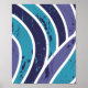 This artwork features bold, flowing wave patterns in purple and turquoise, separated by crisp white lines. The composition is enhanced with scattered paint splashes and splatters across the surface, creating a sense of spontaneity and texture. The diagonal wave movement conveys rhythm and flow, reminiscent of ocean waves combined with abstract expression. The mix of clean curves and chaotic paint marks gives the design a balance between order and artistic freedom.