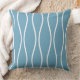 Elegant modern white abstract wavy geometric pattern on teal Pillow.
