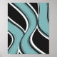 A bold abstract design featuring flowing wavy teal lines contrasted against a deep black background with white accents. The smooth, curving forms and subtle sketch-like strokes create a sense of rhythm, motion, and modern artistic style. Perfect for contemporary artwork, graphic patterns, or stylish backgrounds.