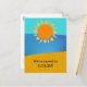 Vibrant colours give a hint that this sunny address change postcard is about a move to Florida. The golden sand of the beach, shimmering blue ocean water and aqua turquoise sky are emblematic of the Florida beaches. The orange abstract sun shines over all... so your northern friends will get the message loud and clear: Florida is where the sun lives... and SO DO YOU.