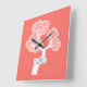 Abstract white circle tree and name living coral square wall clock