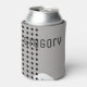 This can cooler has a geometric design made from two scalloped rectangles and a rectangle formed by rows of black dots. If you like the design but prefer different colours, message me.