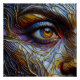 Get lost in the beauty of this abstract artwork, a closeup capturing the right side of a woman's face with a special emphasis on the eye. Intricate golden lines, resembling veins, elegantly spread across the face, creating a mesmerising visual journey. Artistic use of colours fills the space, making it a captivating exploration of form and emotion.