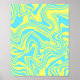 This digital abstract artwork features a mesmerising blend of yellow and blue in a fluid, wavy pattern. The intricate swirls create a sense of movement, reminiscent of marbling or liquid dynamics. The contrast between the bright yellow and calming blue adds depth and vibrancy, making this design visually striking and energetic.