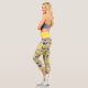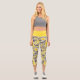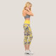 These capri leggings feature an abstract spiral fractal pattern in yellow, black and purple.