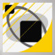 Yellow lines, curved corner, gray ovals, black squares, off-white background. #abstract