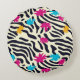 Abstract Zebra Stripes with Leaf Paint Splash Round Cushion