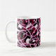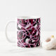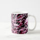 Abstracted coffee mug with geometric shapes and chaotic lines on white background