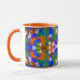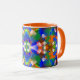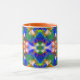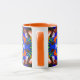 Coffee mug with abstracted ornamental background blue and orange shades