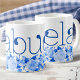 Pretty floral mug for your abuela. The design features the word "abuela" lettered in decorative typography. The wording is bordered with gorgeous, watercolor roses and flowers in shades of royal blue and china blue. A lovely gift for Mother's Day or just because!