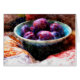 What could be more fulfilling than a handmade pottery bowl, stuffed full with juicy plums, resting on a home-made patchwork quilt? Featuring brown, amethyst, and teal colours, this vision of domestic bliss satisfies.