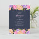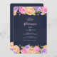 A navy blue invitation with borders of abundant flowers in pink, lavender and gold. (<a href="http://www.freepik.com">Designed by Freepik</a>). <br/><br/>The card is easy to customise with your wording, font, font colour and choice of six paper types.<br/><br/>Not exactly what you're looking for? All our products can be custom designed to meet your needs at no extra charge.<br/><br/>Simply contact us at askcottonlamb@gmail.com<br/><br/>Coordinating products available: