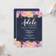 A stunning floral invitation with a navy-blue background and an abundance of pink, lavender, and yellow flowers bordering the top and bottom edges of the card. (Design by Freepik). <br/><br/>The card is easy to customise with your wording, font, font colour and choice of six paper types.<br/><br/>Not exactly what you're looking for? All our products can be custom designed to meet your needs at no extra charge.<br/><br/>Simply contact us at askcottonlamb@gmail.com<br/><br/>Coordinating products available: