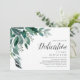 Lovely botanical invitations for your baby's dedication feature lush green eucalyptus leaves and foliage illustrated in watercolor. Customise with your baby dedication details aligned at the right and embellished with chic calligraphy. Invitations reverse to solid forest green.